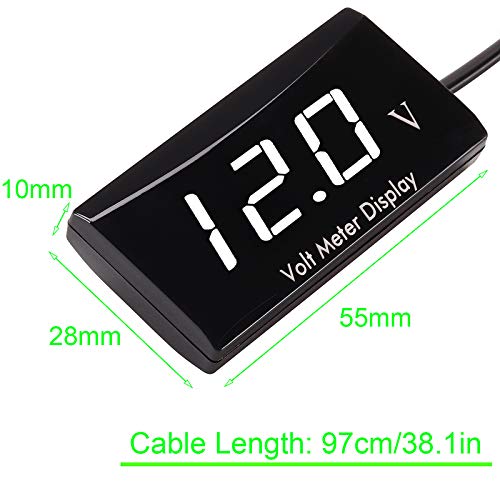 【Grootte van voltmeter】 Afmeting: 5,5 x 2,8 x 1 cm (2,1 x 1,1 x 0,3 inch), kabellengte: 97 cm / 38,1 inch