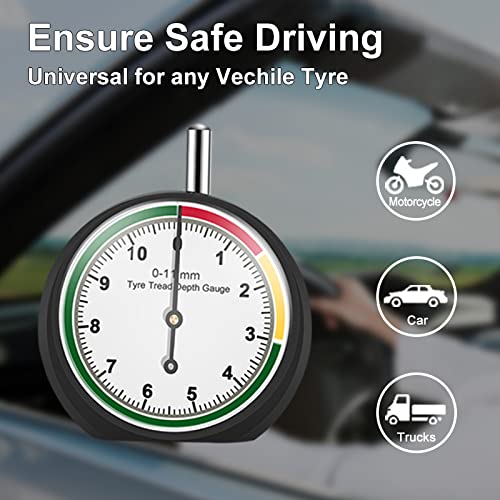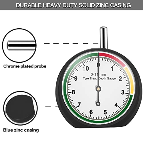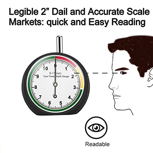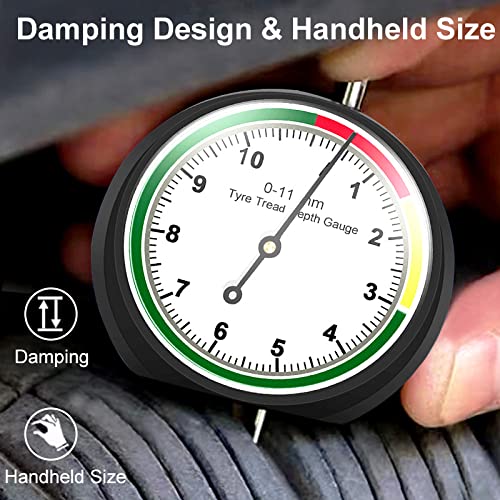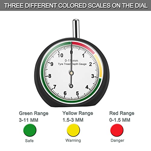 Waarom kiezen voor Godeson Dial Type Band Draad Loopvlak Dieptemeter? Een professioneel hulpmiddel dat de moeite waard is om bandenprofiel dieptemeter, UNIVERSAL FIT AUTO’S EN Vrachtwagens Band loopvlak dieptemeter kan uw voertuig beschermen, Band loopvlak dieptemeter kan uw brandstofkosten besparen, Band loopvlak dieptemeter kan uw rijvermogen verbeteren, Onze meter Feature 1. Meet nauwkeurig de diepte, gekalibreerd van 0 tot 10 millimeter 2. Kleurgecodeerde profieldieptemeter geeft duidelijk de band verschillende fase aan door kleuren 3. Rood bereik op bar: 0-1,6 4. Geel bereik op staaf: 1,6 -4 5. Groen bereik op bar: 4-10 6. Wordt geleverd met een pocket clip, gemakkelijk mee te nemen 7. Leest in millimeter Geschikt voor vrachtwagens, motorfietsen auto’s en alle personenvoertuigen. 8. Zone 1 (rood) toont het loopvlak van de band laag en de band moet worden vervangen 9. Zone 2 (geel) toont marginaal loopvlak resterende 10. Zone 3 (Groen) toont dat de band voldoende loopvlak heeft