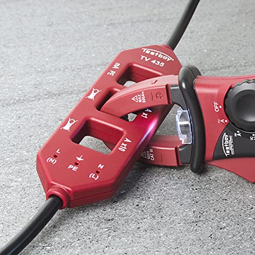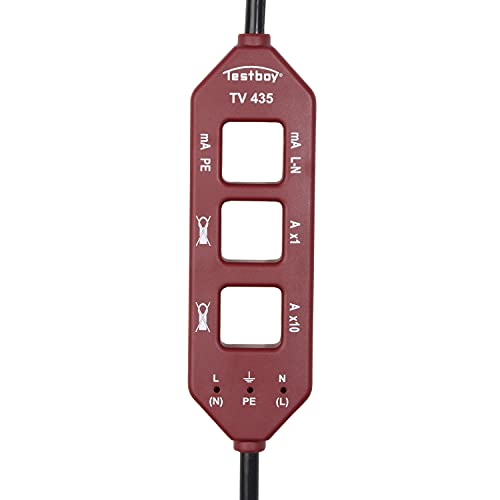 Leveringsomvang: Testboy TV 435 stroommeetadapter – lijnsplitter – laststroommeting, verschilstroommeting, aardleidingstroommeting, geïntegreerde meetcontactdozen – kleur: rood/zwart
