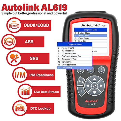 Autel AutoLink AL619 OBD2 Scanner, ABS/SRS Diagnose Scanner CAN Voertuigen Foutcodelezer, Schakelt Motorlicht (MIL) en…