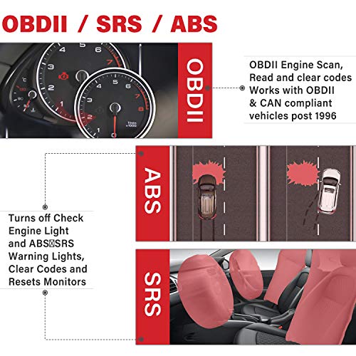 【ONGEVENAARDE VOERTUIGCOMPATIBILITEIT】 AL619 autodiagnosescanner ondersteunt alle OBD2-protocollen: KWP2000, ISO2000, ISO9141, J1850 VPW, J1850 PWM en CAN en is compatibel met alle OBD2/CAN-compatibele voertuigen (sedans, SUV’s en lichte vrachtwagens) na 1996 in de VS, na 2000 voor in de EU gevestigde en Aziatische auto’s. OPMERKING: ABS SRS (Airbag) is NIET universeel compatibel met alle voertuigen. Stuur het VIN-nummer naar 🚘auteldirect@outlook.com🚘 om de compatibiliteit te controleren.