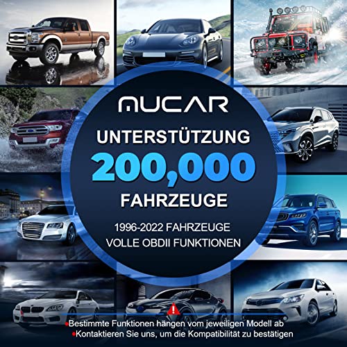 Brede dekking van voertuigen: MUCAR OBD-diagnosegereedschap, compatibel met de meeste Amerikaanse auto’s vanaf bouwjaar 1996, bij EU-auto’s vanaf bouwjaar 2000, als ook voor voertuigen die in Azië zijn gemaakt. Ondersteunt tot 7 voertuigtalen Duits, Engels, Frans, Spaans, Russisch, Italiaans en Portugees. Het ondersteunt alle OBD2-protocollen (ISO9141, KWP2000, J1850 PWM, J1850 VPW en CA)