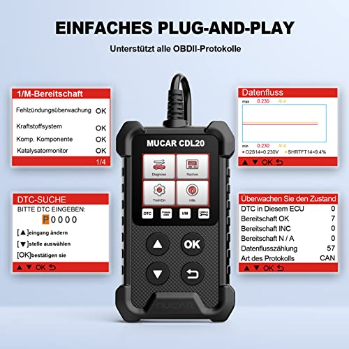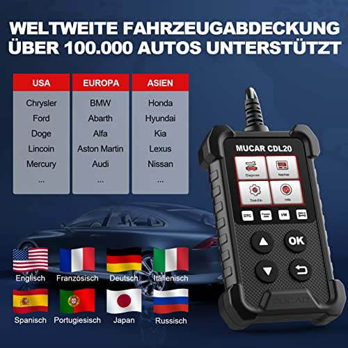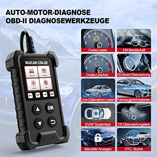 MUCAR OBD2-diagnoseapparaat, CDL20 OBD2/EOBD diagnoseapparaat auto, universele foutcode-lezer voor auto‘s met volledige…