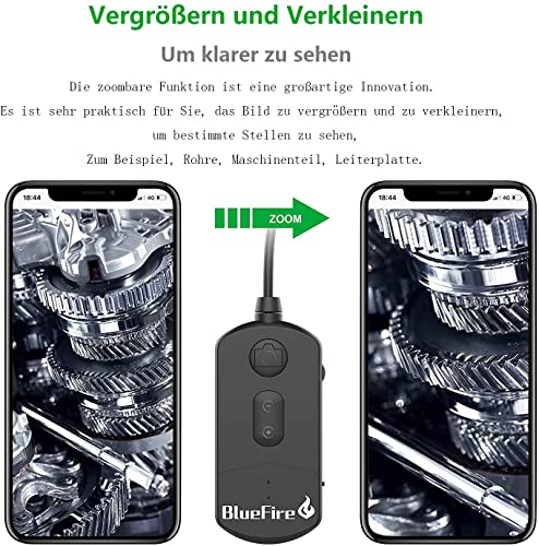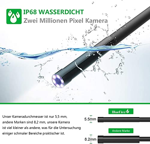 BlueFire Geavanceerde wifi-inspectiecamera, 1080p 5,5 mm 1800 mAh 2 MP zoombare waterdichte, endoscoopcamera…