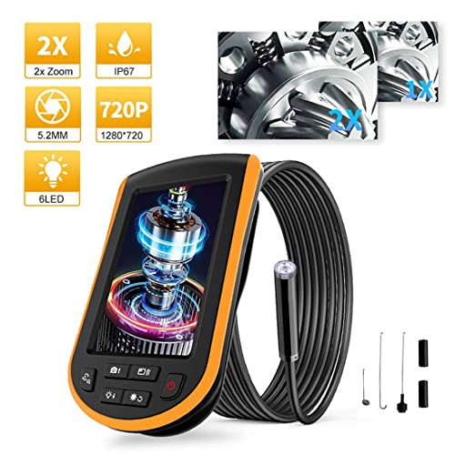 Specification: Borescopen 5,2 mm inspectiecamera, 4,3 in 1080P HD-scherm industriële verre focus endoscoop, semi-rigide slang draagbare…