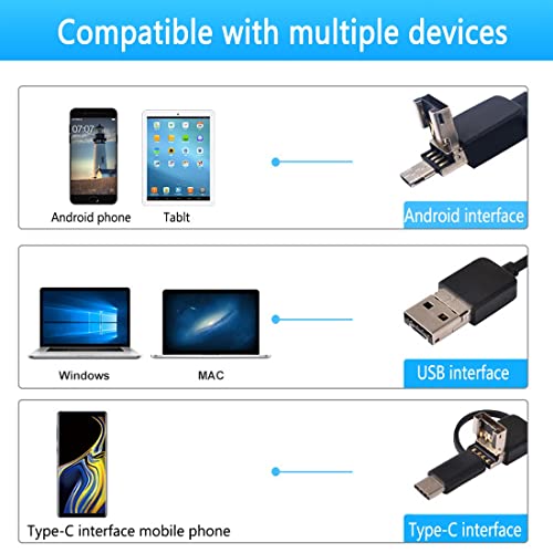 Specification: Borescopen 8 mm inspectiecamera, 2.0 MP Android Windows Borescope, USB 3-in-1 Type-C afvoercamera-endoscoop, IP67…