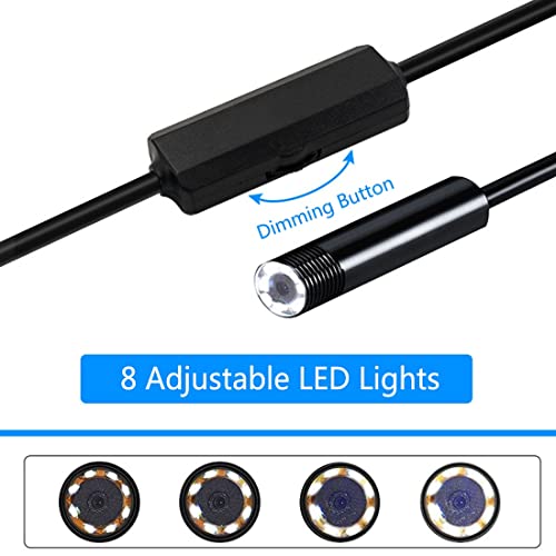【8 helderheidsinstelbare leds】: ingebouwde 8 in helderheid instelbare led-lampjes, zodat u gemakkelijk in donkere omgevingen kunt werken. Zelfs in een schemerige omgeving of te veel blootstelling buiten de omgeving, kan deze inspectiecamera optimale beelden vastleggen met behulp van de in helderheid instelbare LED-verlichting.