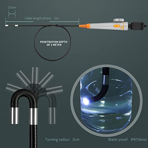 【KLEINE SONDE EN LED-VERLICHTING】De scharnierende borescope is uitgerust met een 8,5 mm inspectiecamera omgeven door LED-verlichting om ervoor te zorgen dat zelfs in donkere omstandigheden een duidelijk beeld kan worden vastgelegd, waardoor gemakkelijke toegang mogelijk is op moeilijk bereikbare plaatsen zoals mechanische inspectie, autoreparatie, loodgieterswerkreparatie, elektrische installatie, plafond, muurupgrade, schoonmaak airconditioning reparatie en meer.