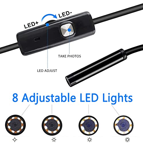 【Unieke LED-technologie】 8 verstelbare LED-lampjes aan de punt van de camera, kunnen de meeste moeilijk te zien gebieden bereiken, helpen de helderheid en helderheid van het beeld te verbeteren, zelfs in donkere of weinig licht. De knop kan de helderheid van de camera’s LED-verlichting, en het kan vrij worden gebruikt in alle schemerige of heldere lichtomstandigheden.