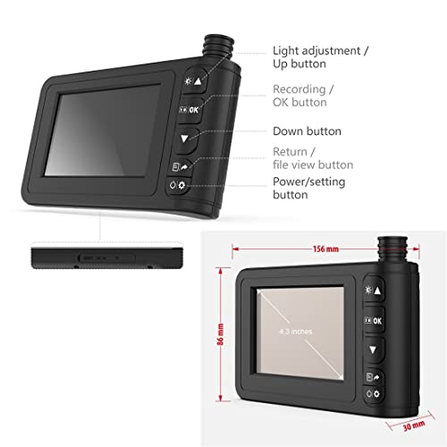 Specification: Borescopes industriële endoscoop inspectiecamera, 4,3” 1080P HD digitale Borescope, 5m semi-rigide slangkabelcamera…