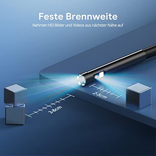 Dual camera 5,5 mm lensdiameter: De Depstech endoscoop DS380 heeft niet alleen twee lenzen, maar de lensdiameter van 5,5 mm is zeer klein op de markt. Het bereikbare bereik is breder dan de algemene 8 mm lens endoscoopcamera.