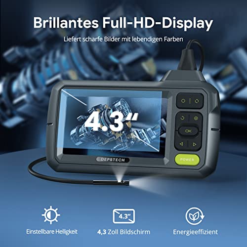Specification: DEPSTECH Endoscoopcamera met licht, 5,5 mm dual lens inspectiecamera, 1080p opname 4,3 inch scherm, gedeelde weergave, 7…
