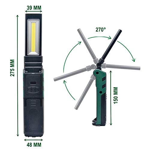 Specification: COB LED-werklamp, WASAGA USB Oplaadbare Inspectielamp, Draagbaar, Opvouwbaar, 270 Graden Draaibaar met Magnetisch en…