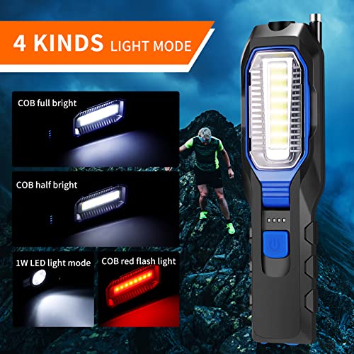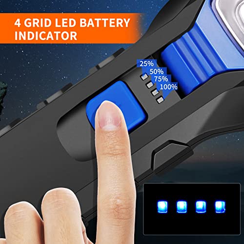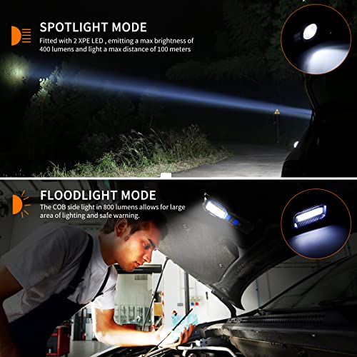 2-in-1 COB + LED-werklamp: onze COB LED Bright zaklamp neemt COB + XPE-technologie aan, die veel helderder is en minder energie verbruikt dan conventionele LED-koplampen. LED-superheldere inspectietoorts heeft 2 XPE-lampen met sterk licht, die tot 1000 lumen bieden om grote oppervlakken en lange lichtafstand tot 300 m te verlichten. Hoge helderheid LED-chip, zacht licht, geen zichtbare schittering, geen flikkering, geen oogschade beschermt de ogen. Zeg vaarwel tegen rommelen in het donker.