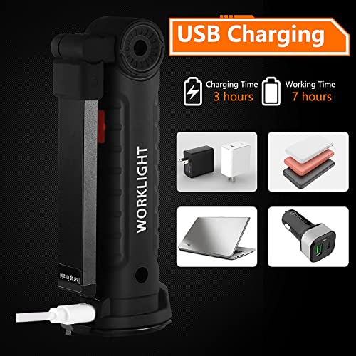 ⚡⚡ 【Oplaadbaar】 Ingebouwde batterijen en oplaadbaar USB-ontwerp, onze COB LED-zaklamp wordt geleverd met een USB-oplaadkabel.Deze werklamp laadt snel op en kan ongeveer 4-5 uur continu werken nadat deze volledig is opgeladen.