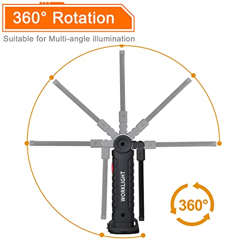 ⚡⚡ 【360 ° rotatie】 De lampkop kan 360 ° horizontaal draaien en kan verlichting met meerdere hoeken bieden. Geweldig voor autoreparaties, huisverlichting, stroomuitval, noodgevallen.