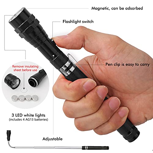 ✔ De telescopische magneet met 1,5 lb en de uittrekbare led-zaklamp is uitgerust met een penhouder voor eenvoudig transport.