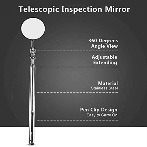 【General Usage】: Round stainless mechanics mirror telescoping is ideal for looking under the hood of a car or for home owners looking in difficult to reach and tight spaces. Find that lost item under the couch or solve that nagging engine issue