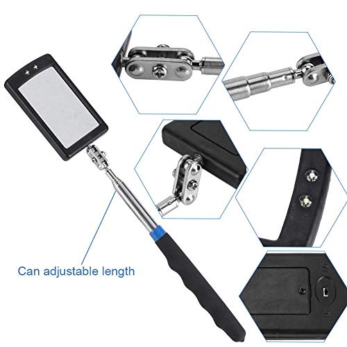 Dit item is gemaakt van gelegeerd staal en solide ABS-kunststof, duurzaam en stevig, veilig en milieuvriendelijk in gebruik. Het heeft 2 extra heldere LED-lampjes die de inspectie van moeilijk te zien en moeilijk bereikbare plaatsen in voertuigen, machines enz. Vergemakkelijken, en gemakkelijk in de donkere spleten van uw werkruimte turen. Het beschikt ook over een 360 graden draaibaar kogelgewricht voor extra kijkmogelijkheden, waardoor de inspectiespiegel vrij kan draaien, maar toch in de gewenste positie blijft. Ideaal gereedschap voor gereedschapmakers, machinisten, inspecteurs en monteurs, lichten maken het vooral handig voor donkere en moeilijk te zien plaatsen. Kopen waard.