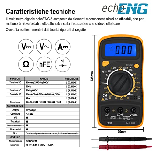 [Structuur] Ontworpen om een groot aantal elektrische problemen op verschillende gebieden, waaronder automobiel- en huishoudelijke gebieden, veilig en nauwkeurig op te lossen. CE-conform met overbelastingsbeveiliging voor veilige maatregelen en weergave bij een laag batterijniveau.