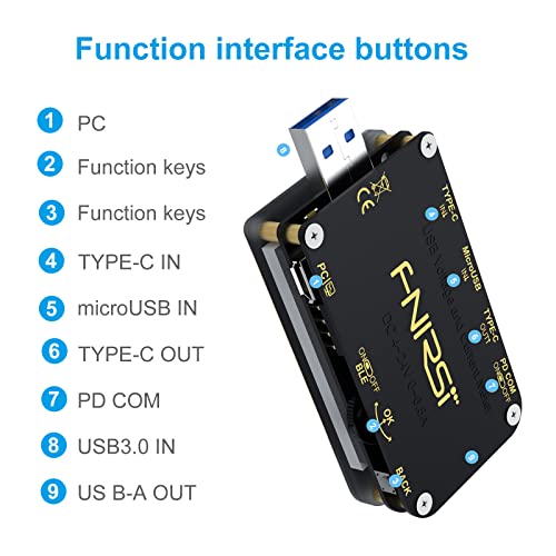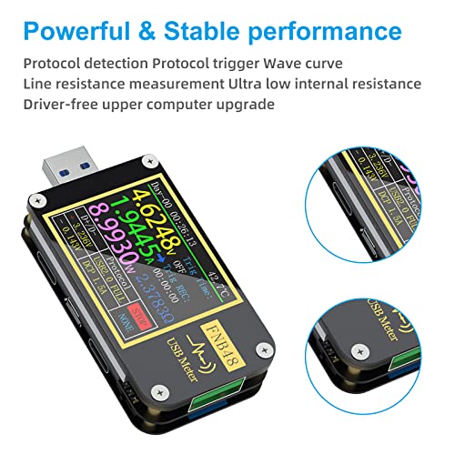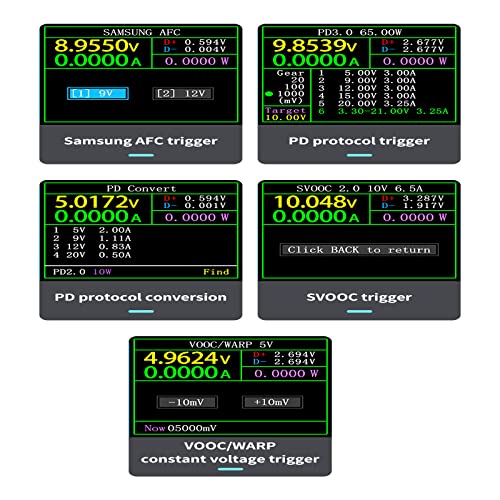 ✔️【Multifunctionele protocolldetector】Geïntegreerde USB-A-, micro-USB, type C-interface. Met 1,77 inch high-definition display, met externe 16-bits ADC, fysieke PD-protocol-chip, real-time bewaking van spanning, stroom, vermogen, capaciteit, laadprotocol tijdens het opladen, bochtvorm enz.
