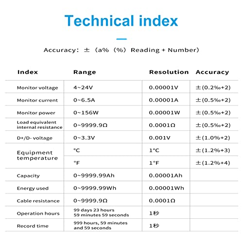 ✔️【Zeer nauwkeurig display】5/6-cijferig display met aan/uit-knop. De maximale resolutie bedraagt 0,0001. Het kan in real-time subtiele veranderingen van spanning, stroom en vermogen tijdens het opladen bewaken. Het kan ook de zwakke stroom detecteren als de oorspronkelijke datakabel leeg is.
