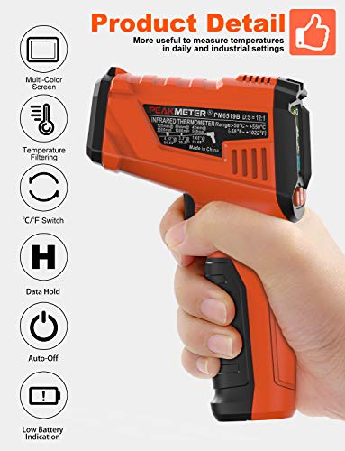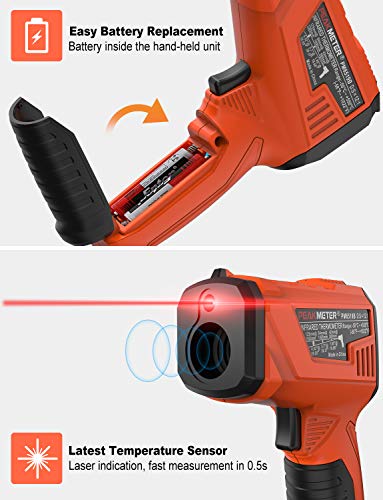 Digitale Laser-Infraroodthermometer, Peakmeter IR-Pyrometer Contactloos Temperatuurmeetapparaat met LCD-verlichting, -5℃~0 ℃/-58℉~32℉ Voor de Industrie, Inclusief 2 AAA* -Batterijen (Niet Voor Mensen)