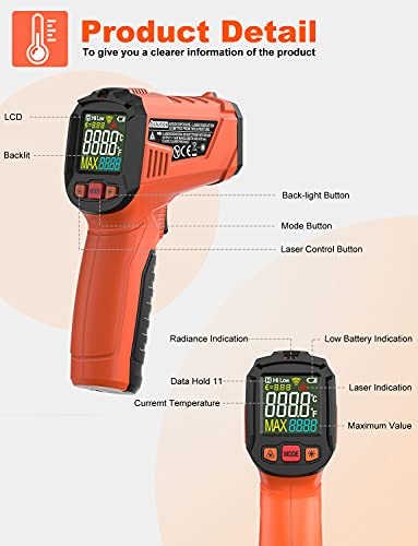 【HOGE NAUWKEURIGHEID】 / ± 3 ℃ (6 ℉) Reactietijd: 8 ~ 14um. Combineert de nieuwste temperatuursensortechnologie met een geavanceerde Fresnel-lensafstand tot de spotverhouding: 12: 1 garandeert de meest nauwkeurige resultaten, zelfs op grotere afstanden. OPMERKING: De diameter van het te inspecteren object moet groter zijn dan de grootte van de laserspot.