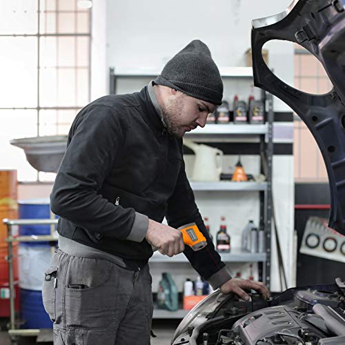 🔥【Handig in gebruik】 Backlight LCD scherm, ondersteund gekleurd display en automatische scherm-uit functie, bespaard energie voor jou, een 9V 6F22 batterij kan 12 maanden mee gaan, niet meer vaak wisselen van batterijen. Bovendien, de thermometer support ℉/℃ wissel, laser aan/uit en historie van max temperatuur waarde vertoning.