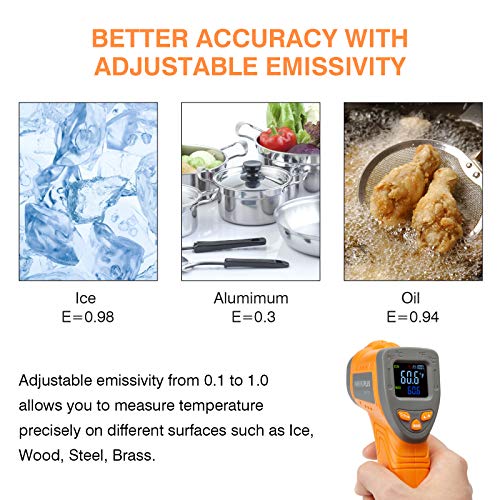 🔥【Diverse Toepassingen】 -50℃~550℃/ groot meetbereik, kan gebruikt worden voor opervlakte temperatuur meting van voedselof, koelkasten , auto.s, elektrische apparaten , chemische stoffen en andere objecten.